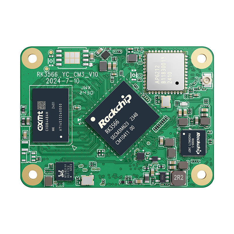 The PortPi CM3 highly integrates the functions of the Rockchip RK3566 quad-core processor on a compact board. The RK3566 features a quad-core A55 CPU, a dual-core ARM G52 GPU, a VPU, and an NPU. It supports video output, PCIe, CSI, and other interfaces, making it very suitable for embedded applications. Different RAM, eMMC flash memory specifications, and wireless module specifications are also available.