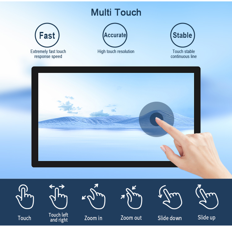 Supports a variety of gestures, including zoom in/out, swipe, and slide, making it perfect for interactive applications such as digital kiosks, POS systems, and public information displays.