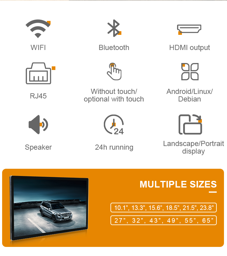 The YC-55MT Series Metal Case Wall-Mount Advertising Player is a high-performance digital signage solution designed to meet the demands of 24/7 operation in a wide range of commercial and public environments. With its durable metal casing, versatile display sizes, and customizable hardware configurations, the YC-55MT is perfect for installations that require reliability, flexibility, and advanced media playback capabilities.