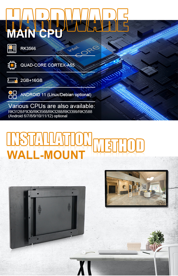 Main CPU: Powered by the RK3566 Quad-Core Cortex-A55 processor, the YC-55MT delivers smooth and efficient performance for various digital signage applications.
