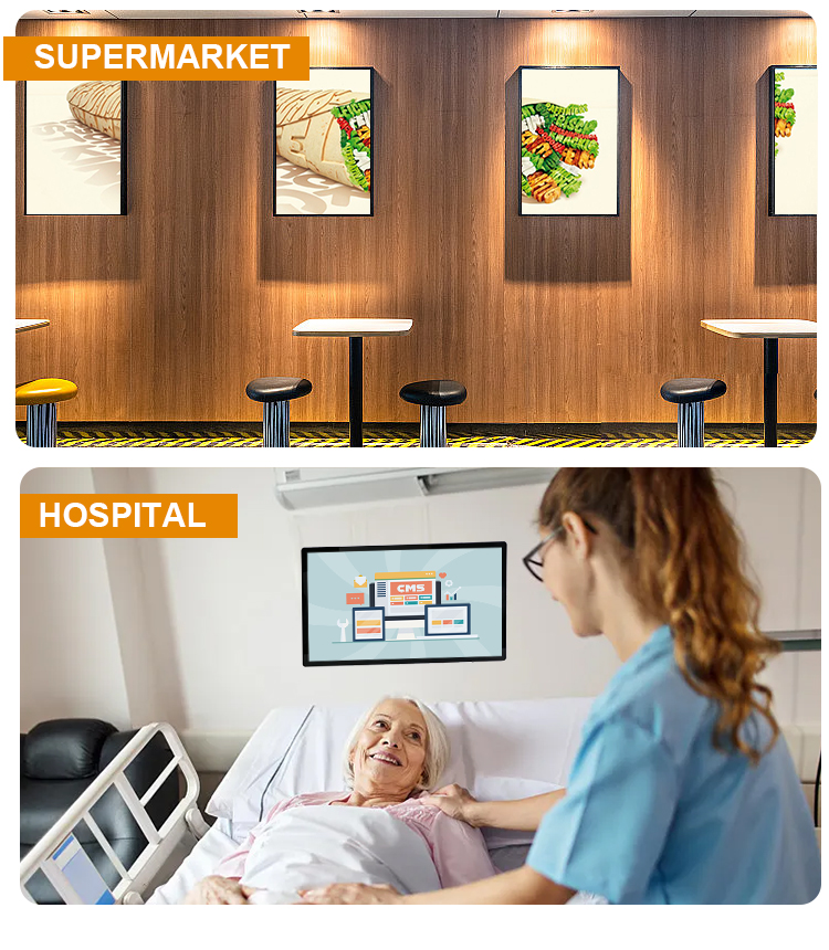 - Supermarkets: Use as digital signage for promotions, special offers, and product information in retail stores and supermarkets.